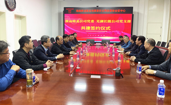 为更好地发挥基层党组织堡垒作用,激发基层党组织活力,实现工作再上新台阶,4月13日下午,在公司一楼会议室,淮南舜龙公司党委与芜湖长能公司党支部举行共建签约仪式。