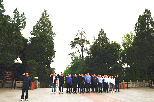 之后大家来到金寨县红军广场,首先映入眼帘的就是门楣上方由江泽民同志亲笔题写的“金寨县烈士纪念馆”几个大字。大家顺着台阶拾级而上,一座由刘伯承亲笔题词“燎原星火”的革命烈士纪念塔在红军广场中央赫然矗立着,彰显着生生不息的红色革命精神。全体党员们怀着虔诚的心,在纪念塔前庄严肃穆地整齐列队,深切表达对革命烈士的敬仰与缅怀之情。现场,党员们向革命烈士纪念塔致敬默哀,在舜龙公司党委书记、董事长汤安俊的带领下,面向党旗一起重温了入党誓词,铮铮誓言,拳拳赤心表达了每位共产党员的坚定信念。