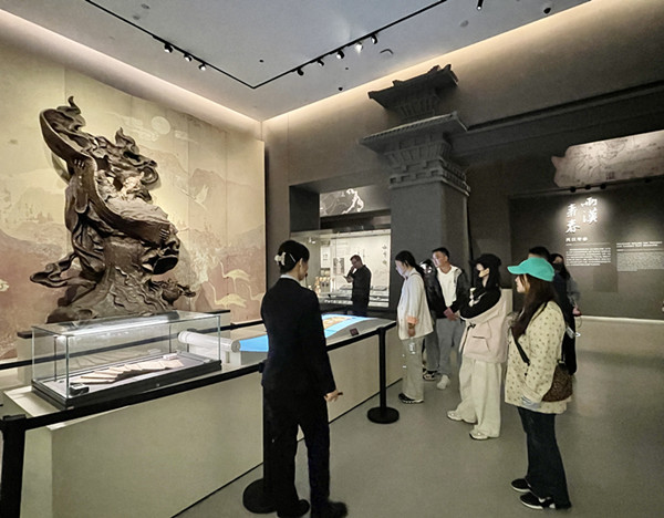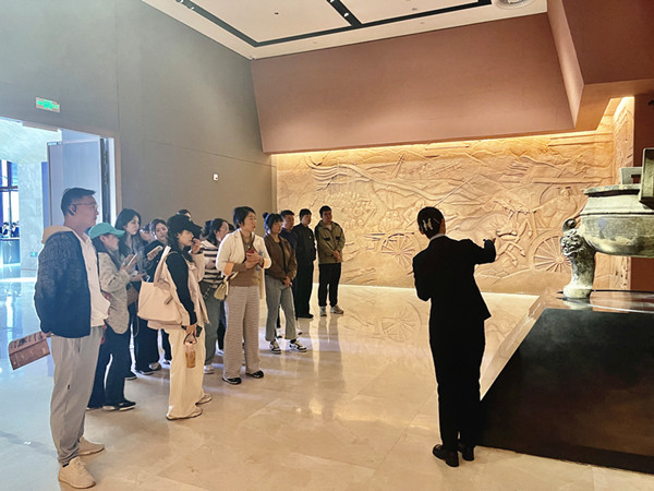 在讲解员的带领下,大家依次参观了各大主题陈列馆,一个个设计别致的展厅、一件件珍贵的藏品文物让大家惊叹不已。展馆内的陶器、瓷器、青铜器、金玉、字画等展品精美绝伦,陈列文物楚金币、“越王者旨于赐”剑和汉八龙纹金带扣等文物藏品将大家的思绪带回那段金戈铁马的岁月,让大家在扑面而来的历史文化厚重感中,犹如穿越时空,共同感受历史巨变。