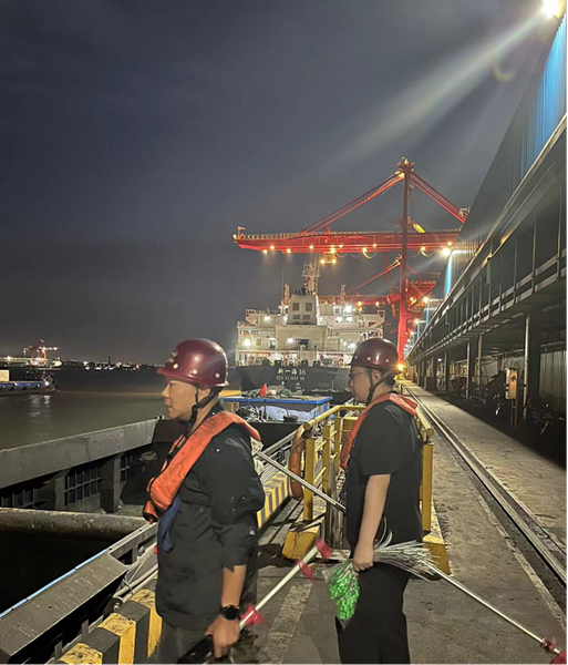 作为江海物流事业部的现场业务员,接驳海轮、海江船查舱、了解煤炭数质量情况、船舶调度、安装监控设备、装货现场管理、装齐撒灰、铅封,以及港口装卸货前的检查(查雨布、查铅封、复核水尺)等都是我的日常工作,作为一名学徒,在老师的指导下,面对这些看似简单、实则繁琐的工作,我始终严谨、认真、负责的做好装卸事前、事中及事后照片和数据的收集和保存。随着对业务的渐渐理解,我在老师的指导下学会了监控的简单维护与修理,以及如何梳理稳压器线头等“技术活”,让自己在一线作业遇到技术问题时心里也有了一些底气。