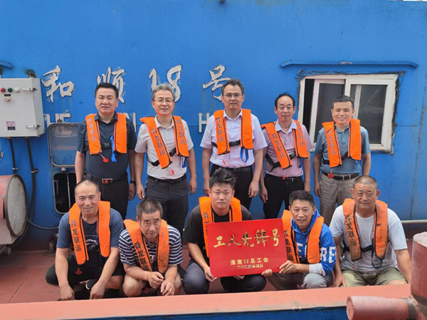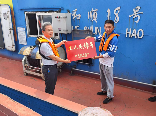 5月份,和顺18号江轮被淮南市总工会授予“淮南市工人先锋号”荣誉称号。上船后,梁斌对和顺18号举行了授牌仪式,把这一份荣誉授予和顺18号全体船员。梁斌强调这项荣誉是你们全体船员齐心协力安全航行、保质保量完成公司的运输任务的成果,是公司对你们一年来工作的充分肯定,希望在下一步工作中进一步弘扬劳模精神,为全体“舜龙人”做好榜样。